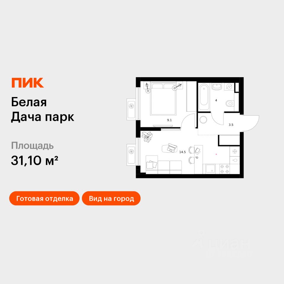 Продаётся 1-комн. квартира площадью 31,1 кв.м на 12 этаже 15 этажного дома (Корпус 16.2, Секция 6) проекта ПИК Белая Дача парк. Светлый просторный подъезд на уровне земли, функциональная планировка, большие окна, c отделкой.