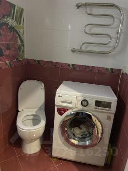 Совмещенный санузел: удобная душевая кабина, стиральная машинка, туалет.