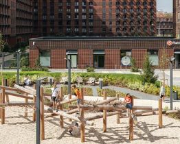На территории квартала будут построены 22 дома, две школы, поликлиники и пять детских садов. Один из центральных элементов проекта — широкий пешеходный бульвар, где мы создали пространства для спорта, прогулок и отдыха. Яркой точкой притяжения стал ПлейХаб "Ферма" — масштабная игровая зона с домом-мельницей, искусственным ручьём и развивающими элементами для детей. В 2024 году ПлейХаб стал победителем "Всероссийской премии лучших проектов создания игровой среды" и получил награду "Лучшая реализация игровой площадки среди девелоперских проектов".