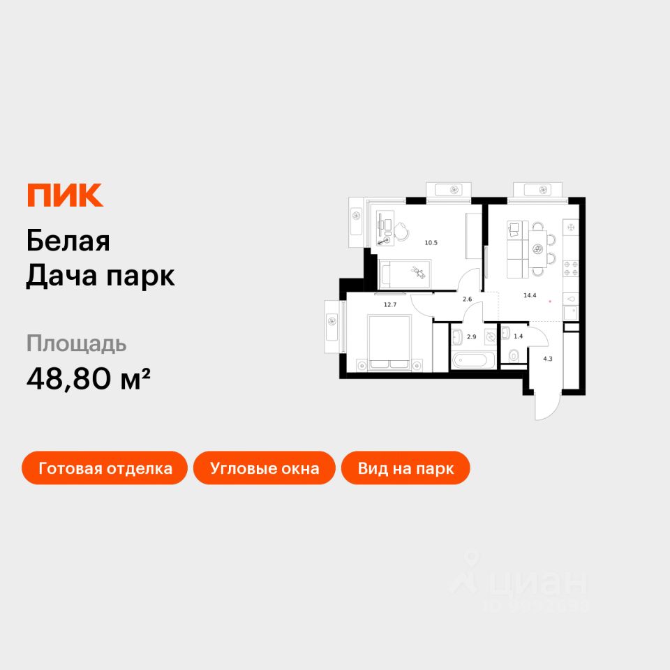 Продаётся 2-комн. квартира площадью 48,8 кв.м на 5 этаже 20 этажного дома (Корпус 16.2, Секция 7) проекта ПИК Белая Дача парк. Светлый просторный подъезд на уровне земли, функциональная планировка, большие окна, c отделкой.