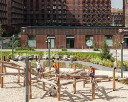 На территории квартала будут построены 22 дома, две школы, поликлиники и пять детских садов. Один из центральных элементов проекта — широкий пешеходный бульвар, где мы создали пространства для спорта, прогулок и отдыха. Яркой точкой притяжения стал ПлейХаб "Ферма" — масштабная игровая зона с домом-мельницей, искусственным ручьём и развивающими элементами для детей. В 2024 году ПлейХаб стал победителем "Всероссийской премии лучших проектов создания игровой среды" и получил награду "Лучшая реализация игровой площадки среди девелоперских проектов".