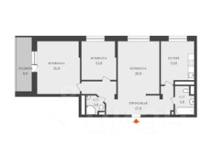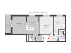 Кухня 14 кв.м. Изолированные комнаты: 20, 21, 13 кв.м. Просторная прихожая.