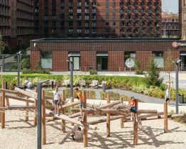 На территории квартала будут построены 22 дома, две школы, поликлиники и пять детских садов. Один из центральных элементов проекта — широкий пешеходный бульвар, где мы создали пространства для спорта, прогулок и отдыха. Яркой точкой притяжения стал ПлейХаб "Ферма" — масштабная игровая зона с домом-мельницей, искусственным ручьём и развивающими элементами для детей. В 2024 году ПлейХаб стал победителем "Всероссийской премии лучших проектов создания игровой среды" и получил награду "Лучшая реализация игровой площадки среди девелоперских проектов".
