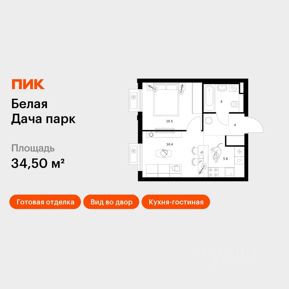Продаётся 1-комн. квартира площадью 34,5 кв.м на 8 этаже 15 этажного дома (Корпус 16.1, Секция 4) проекта ПИК Белая Дача парк. Светлый просторный подъезд на уровне земли, функциональная планировка, большие окна, c отделкой.