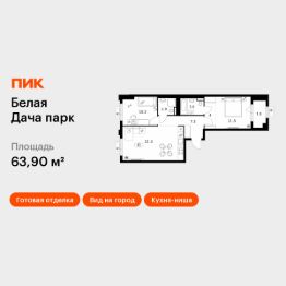 Продаётся 2-комн. квартира площадью 63,9 кв.м на 14 этаже 18 этажного дома (Корпус 22.2, Секция 9) проекта ПИК Белая Дача парк. Светлый просторный подъезд на уровне земли, функциональная планировка, большие окна, c отделкой.