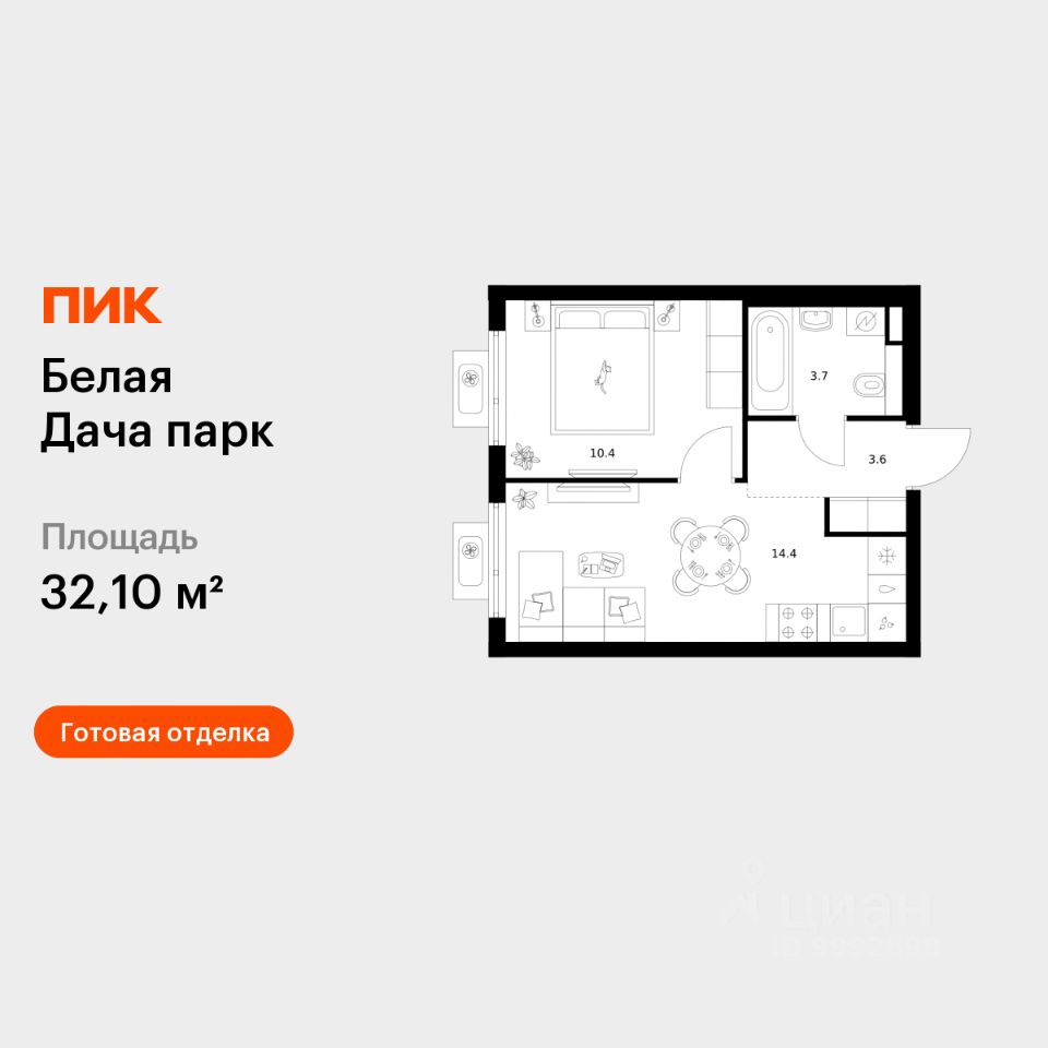 Продаётся 1-комн. квартира площадью 32,1 кв.м на 14 этаже 25 этажного дома (Корпус 22.2, Секция 6) проекта ПИК Белая Дача парк. Светлый просторный подъезд на уровне земли, функциональная планировка, большие окна, c отделкой.