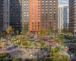 На территории квартала будут построены 22 дома, две школы, поликлиники и пять детских садов. Один из центральных элементов проекта — широкий пешеходный бульвар, где мы создали пространства для спорта, прогулок и отдыха. Яркой точкой притяжения стал ПлейХаб "Ферма" — масштабная игровая зона с домом-мельницей, искусственным ручьём и развивающими элементами для детей. В 2024 году ПлейХаб стал победителем "Всероссийской премии лучших проектов создания игровой среды" и получил награду "Лучшая реализация игровой площадки среди девелоперских проектов".