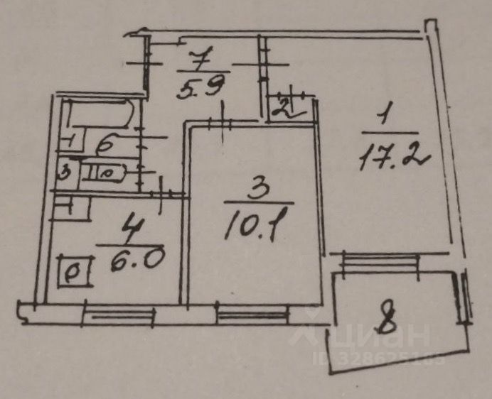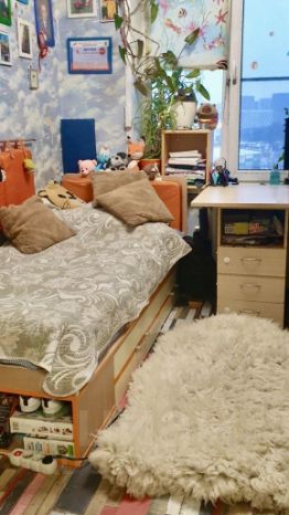 Расположена на 7 этаже 9-этажного панельного дома. Жилая площадь составляет 27.3 кв. м( 10,1кв.м. и 17,2кв.м.), кухня — 6 кв. м. Окна выходят во двор, что обеспечивает тишину и спокойствие.
