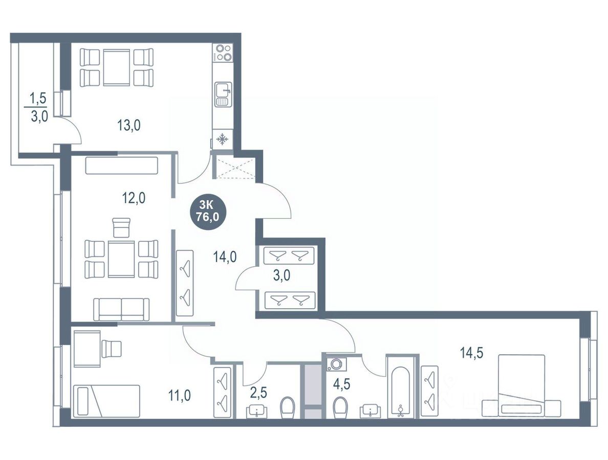 Продается трехкомнатная квартира 270 в новостройке ЖК "Котельники парк" по адресу Московская область, г. Дзержинский, мкр. Новые Котельники, корп. 11. Общая площадь квартиры - 76.00 кв. м., этаж 18 из 25, секция 2. Стоимость квартиры - 13755112 Р. Срок сдачи - 4 квартал 2026 года. Более подробная информация по телефону.