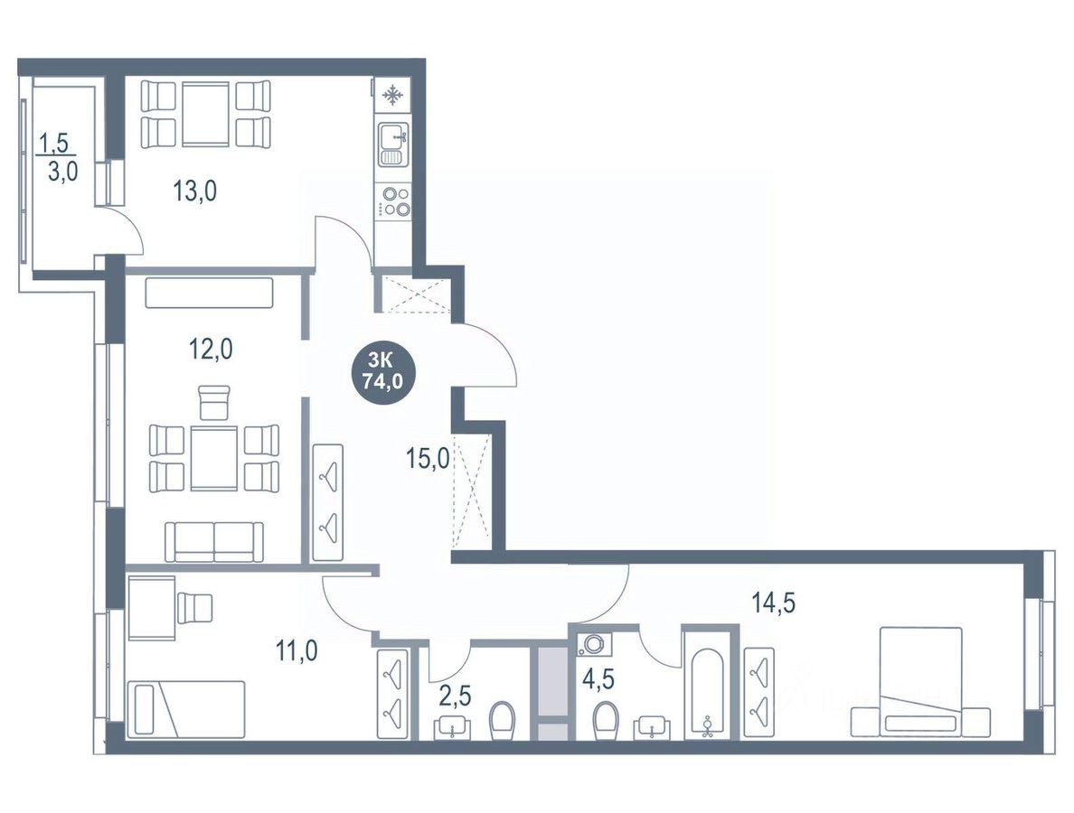 Продается трехкомнатная квартира 594 в новостройке ЖК "Котельники парк" по адресу Московская область, г. Дзержинский, мкр. Новые Котельники, корп. 11. Общая площадь квартиры - 74.00 кв. м., этаж 25 из 25, секция 4. Стоимость квартиры - 14590694 Р. Срок сдачи - 4 квартал 2026 года. Более подробная информация по телефону.