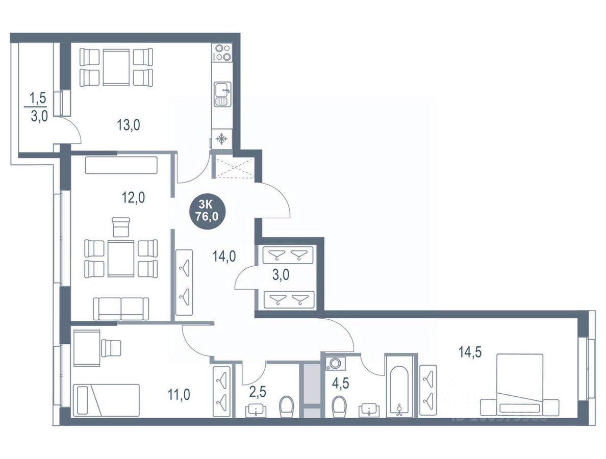 Продается трехкомнатная квартира 366 в новостройке ЖК "Котельники парк" по адресу Московская область, г. Дзержинский, мкр. Новые Котельники, корп. 12. Общая площадь квартиры - 76.00 кв. м., этаж 16 из 25, секция 3. Стоимость квартиры - 14116872 Р. Срок сдачи - 4 квартал 2026 года. Более подробная информация по телефону.