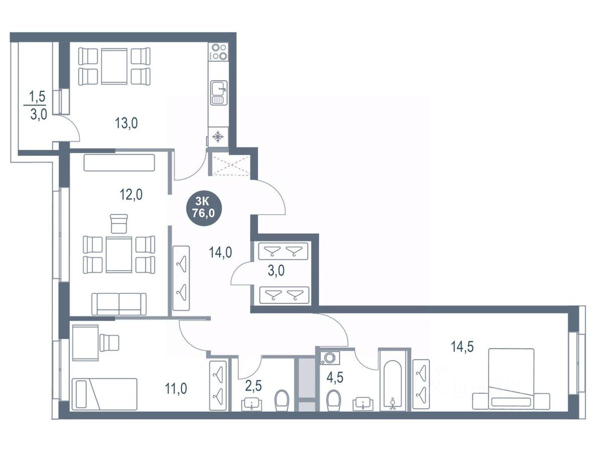 Продается трехкомнатная квартира 312 в новостройке ЖК "Котельники парк" по адресу Московская область, г. Дзержинский, мкр. Новые Котельники, корп. 12. Общая площадь квартиры - 76.00 кв. м., этаж 7 из 25, секция 3. Стоимость квартиры - 14583968 Р. Срок сдачи - 4 квартал 2026 года. Более подробная информация по телефону.