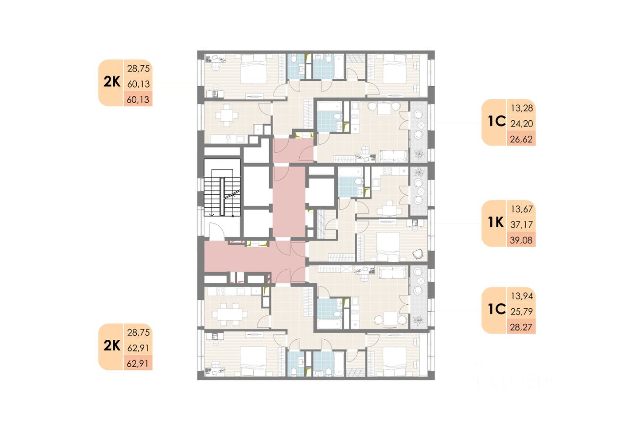 Общая площадь62,91 м²