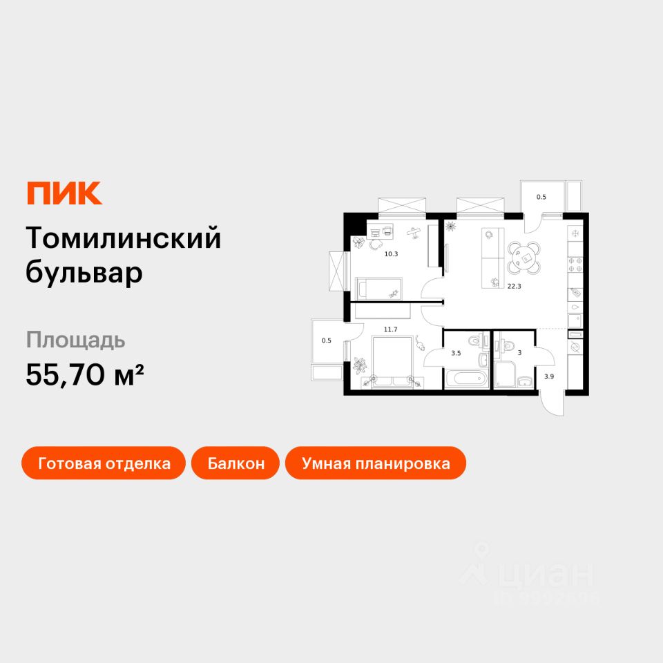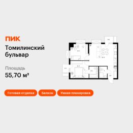 Продаётся 2-комн. квартира площадью 55,7 кв.м на 4 этаже 25 этажного дома (Корпус 5-8, Секция 2) проекта ПИК Томилинский бульвар. Светлый просторный подъезд на уровне земли, функциональная планировка, большие окна, c отделкой.