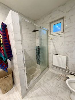 В большом доме 2 этажа, жилая площадь 128кв м , везде теплые полы , 2 ванные комнаты , 3 спальни , гардеробная , гостиная объединенная с кухней , 5 балконов , камин , бойлерная комната , комната с системой фильтрации воды. Отопление батареями, мебель частично остается ( по желанию покупателя). Вид с балконов открывается на озеро , которое находится в шаговой доступности от дома . Подходит для круглогодичного проживания.