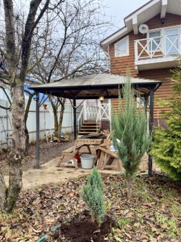 Участок огорожен забором из проф настила , так же есть автоматические ворота и калитка . На участке есть 2 парковочных места , за ними расположена беседка , зона гриля . За большим домом есть площадь для установки каркасного бассейна , в 5 минутах ходьбы есть остановка общественного транспорта, так же в доступности школы , детские сады , магазины , торговые центры .