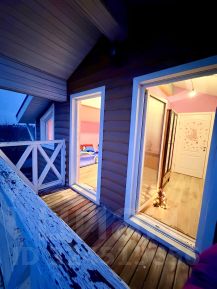 В маленьком доме 2 этажа, площадь дома 6х6 , 2 спальни , 1 санузел , кухня , возможно круглогодичное проживание , так как есть отопление электрическое/камин ( фото маленького дома изнутри не представлено , его осмотр возможен только при личном осмотре ) .
