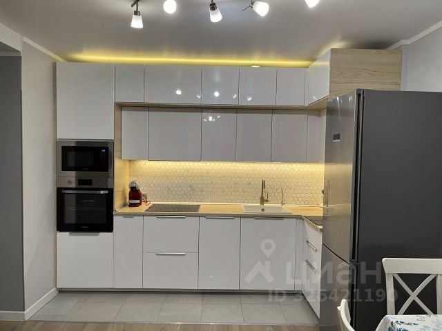 • кухонный гарнитур со встроенной техникой (микроволновая печь, посудомоечная машина, электрическая варочная панель, духовой шкаф), двухкамерный холодильник