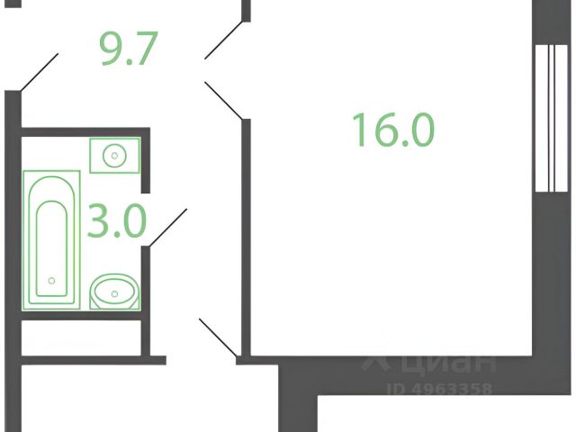 Квартира расположена на 10 этаже 17-этажного дома. Общая площадь квартиры 40,6 кв.м (без учета лоджии), изолированная комната 16,5 м2 и просторная кухня-гостиная 12,8м2