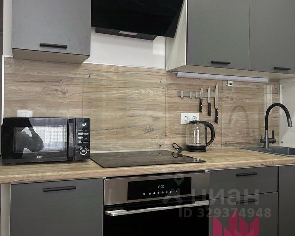 - кухонный гарнитур с новой бытовой техникой (индукционная варочная панель с вытяжкой, духовой шкаф, холодильник, посудомоечная машина, микроволновка, чайник, встроенный фильтр для воды, закуплен комплект кастрюль (три штуки), сковорода, комплект тарелок, кружек, ножей и столовых приборов, лопатки для готовки и половник;